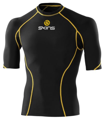 Get cheap price SKINS Sport Black Top Short Sleeve Men's Compression Shirt - Black/Yellow, XL